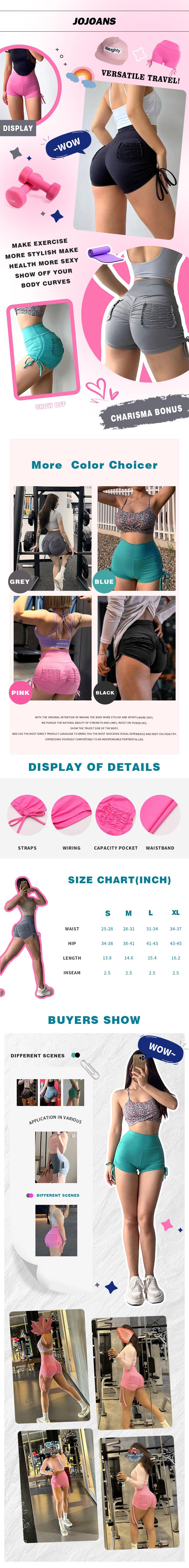 - 【Gym Shorts with Pockets and Drawstring】The women workout shorts have two back pockets design, making your skinny shorts both practical and stylish, no more worry about your essentials such as your phone, wallet to place. And the drawstring design on the side makes you more cute and lively!