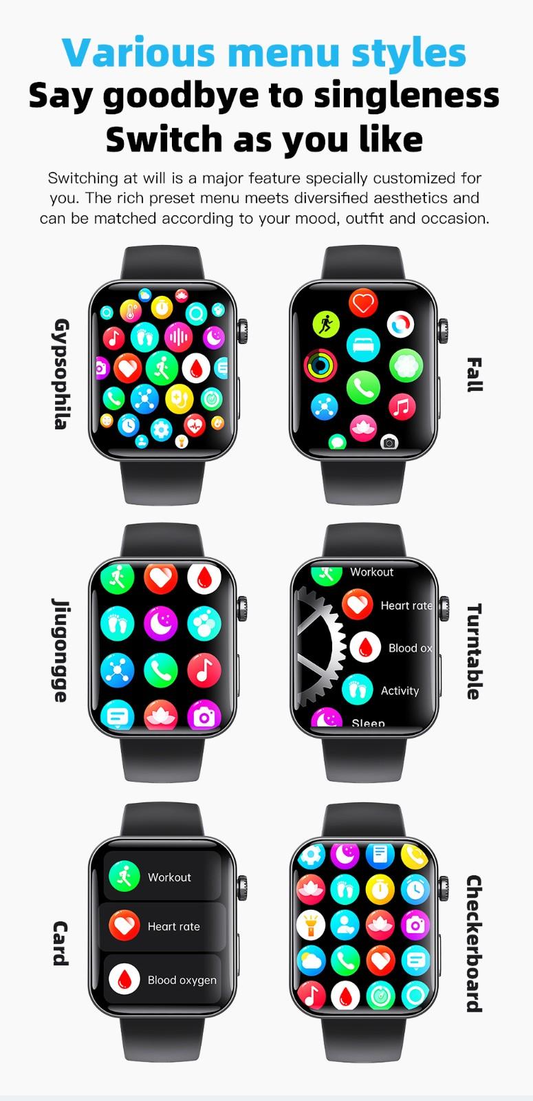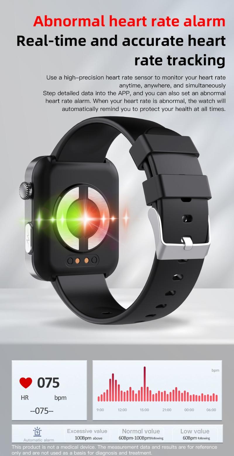 Function: Step Counting, Heart Rate Monitoring, Blood Pressure Measurement, Temperature Measurement, Bluetooth Communication, Smart Reminder, Sleep Monitoring, Blood Oxygen Detection