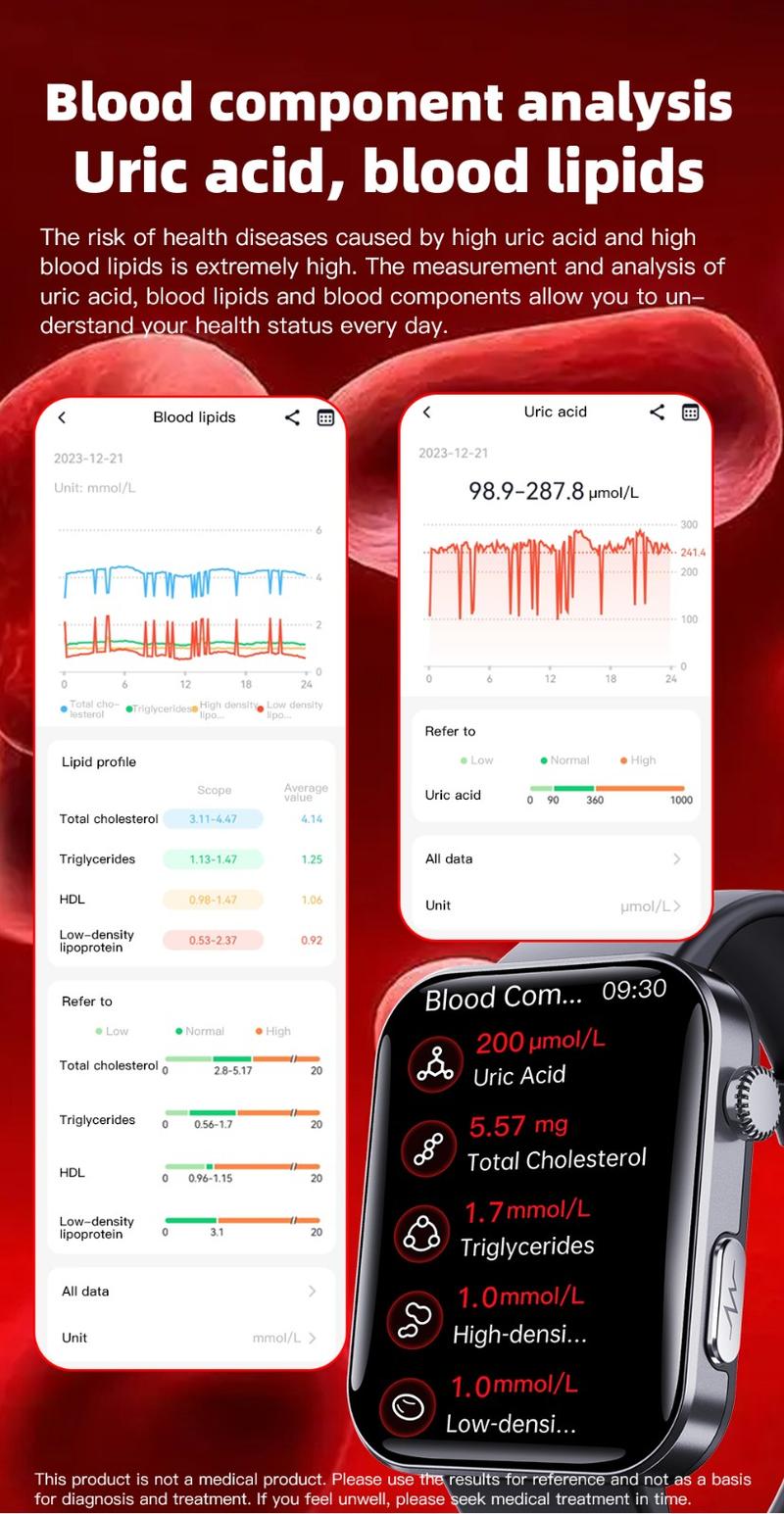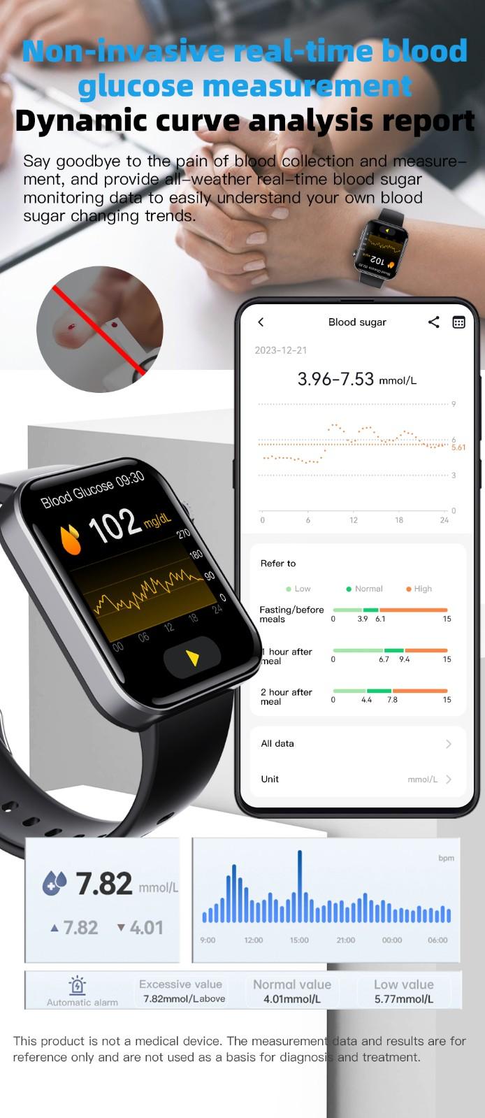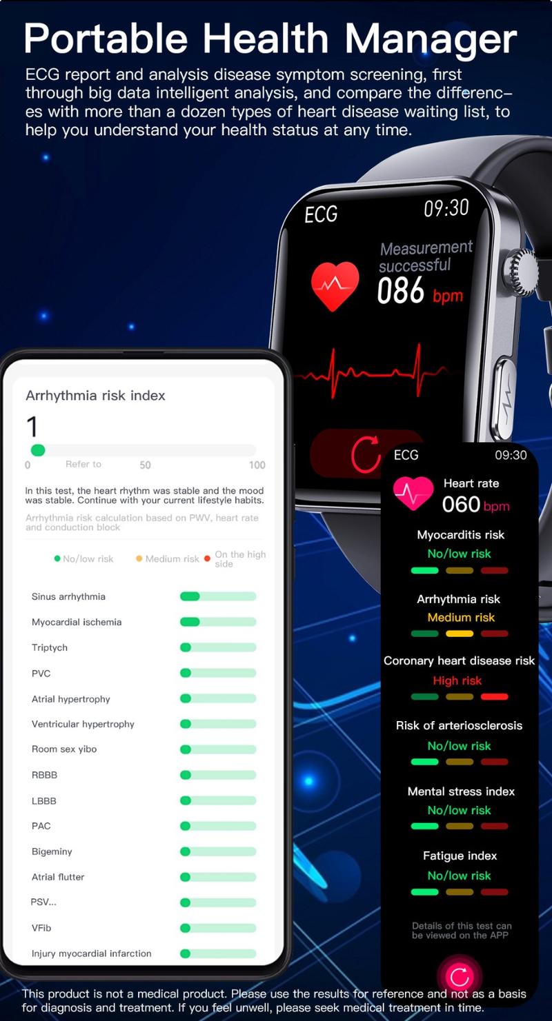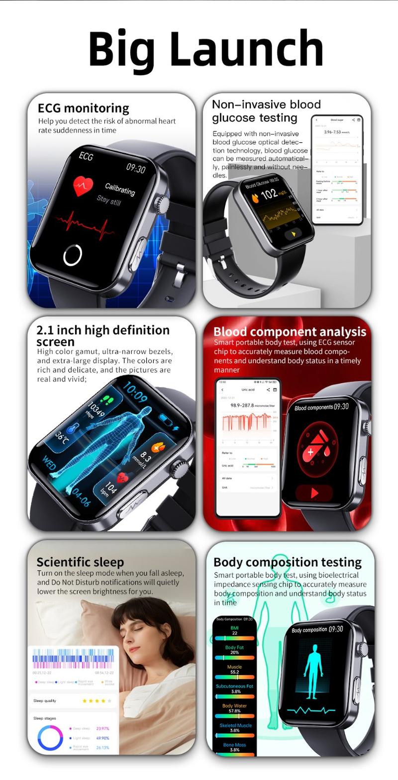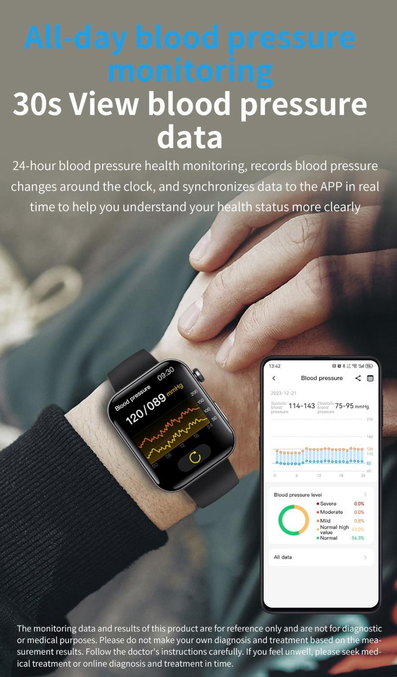 Smart Watch ECG Monitoring SOS Fall Alarm Blood Glucose and Blood Pressure Bluetooth Sports Smart Watch HRV Report